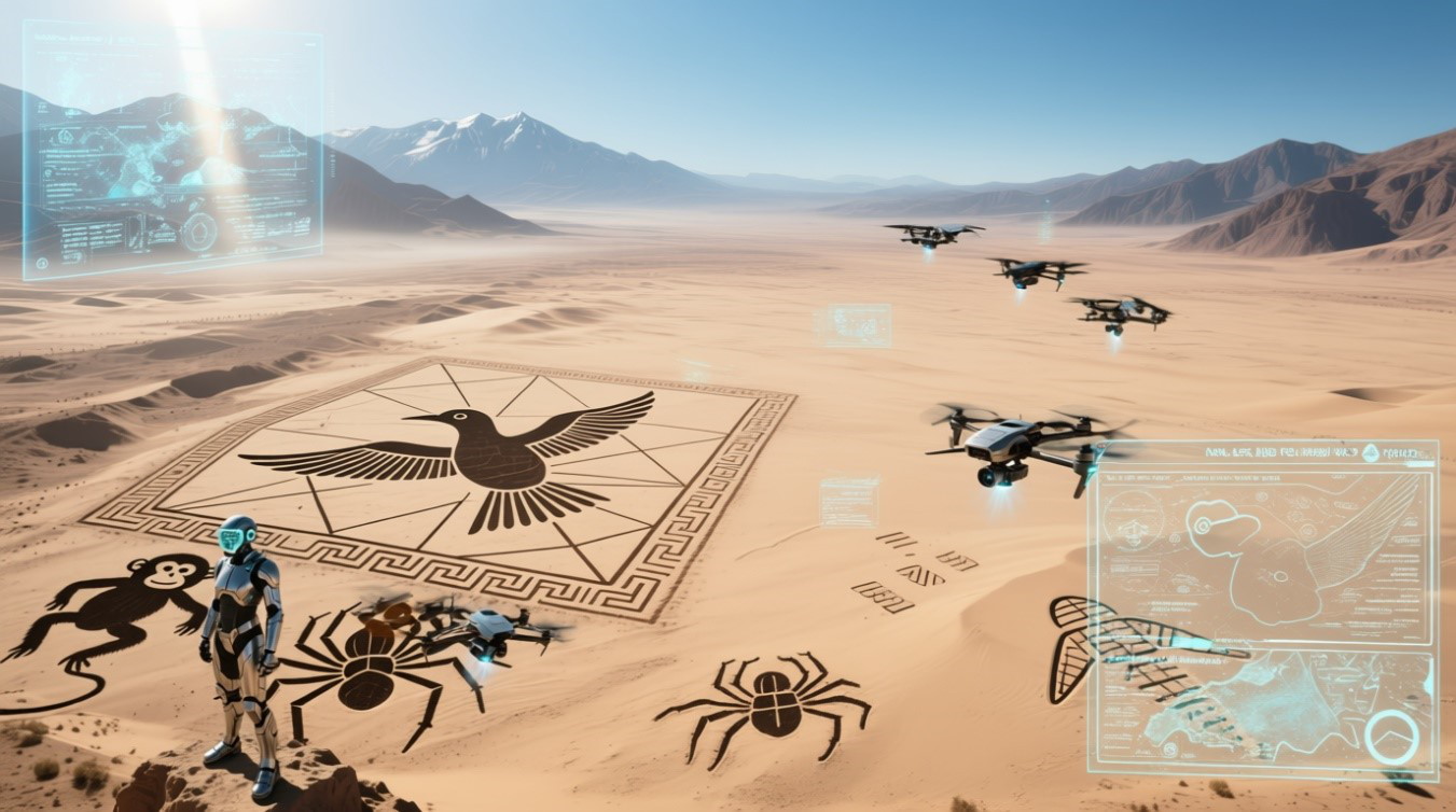 La Inteligencia Artificial, está transformando campos que parecen ajenos a los algoritmos, como la ARQUEOLOGÍA. Imagínense: en el vasto desierto de Nazca, en el sur de Perú, unas enigmáticas figuras gigantes talladas en la tierra por una civilización antigua han intrigado a la humanidad durante siglos.